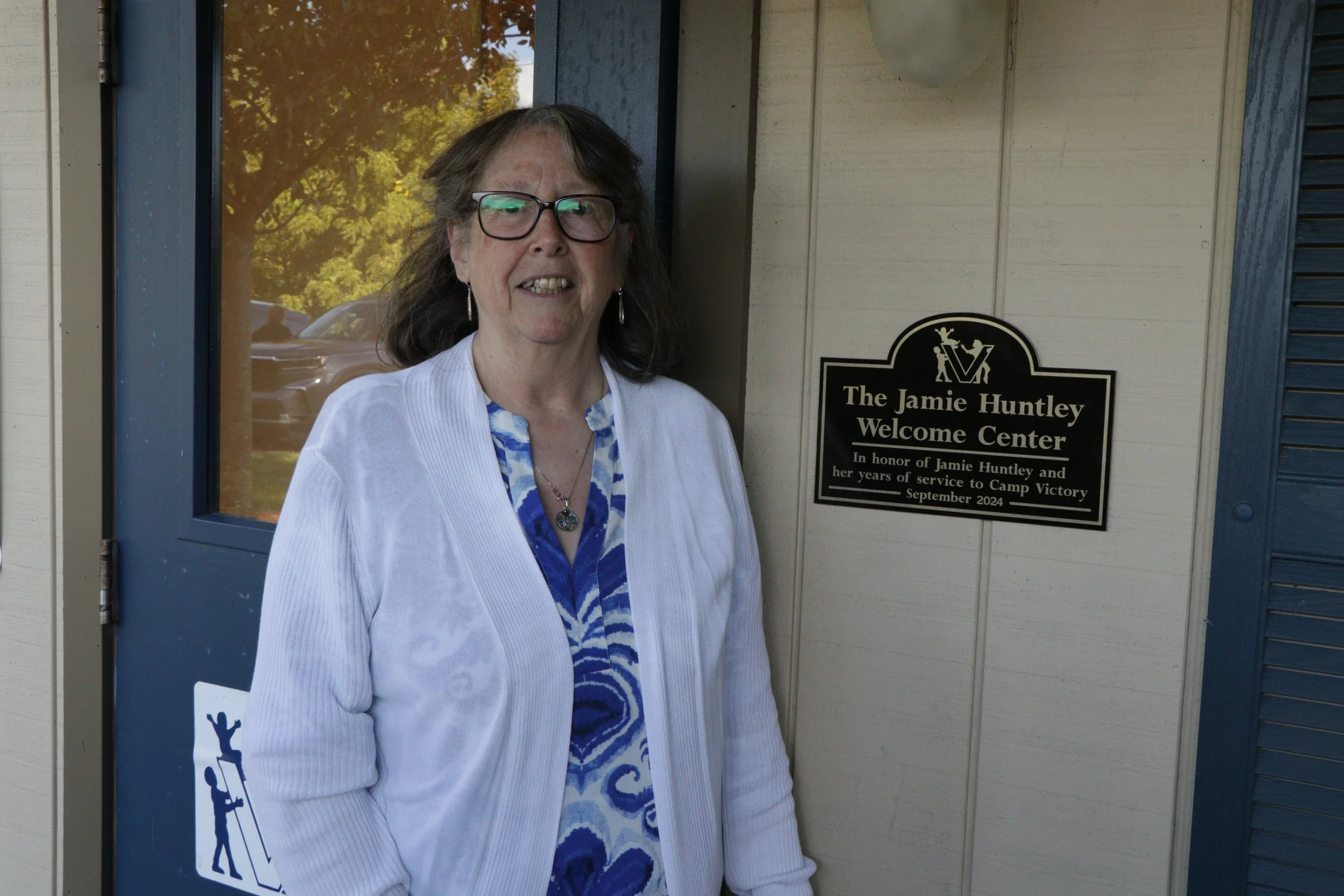 On September 8th, The Jamie Huntley Welcome Center debuted during a ribbon cutting ceremony. Jamie Huntley, who recently retired in April was given the well-deserved honor after many years of hard work, love, and commitment to Camp Victory and all of our special campers. As Karl Girton, Emeritus Board Member, said during his presentation, “it is only fitting that the building that welcomes all of our wonderful guests be named after someone that helped Camp Victory become the amazing place that it is”. Please join us in thanking Jamie for all that she did for Camp Victory over the years and we hope that she continues to have a relaxing retirement spending much time with her family and friends.